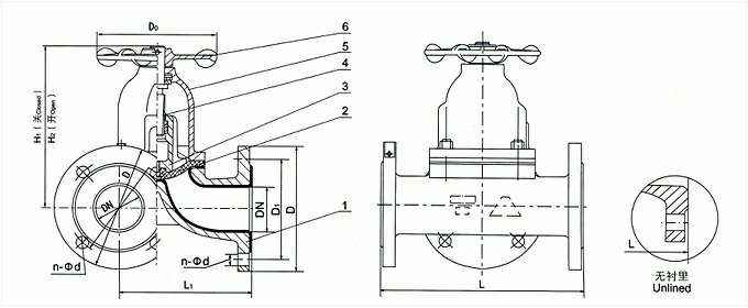 用途:本阀专用于控制非腐蚀性或一般腐蚀性介质,阀体内腔表面无衬里或覆有可供选择的各种橡胶,适用于不同工作温度和流体管路。