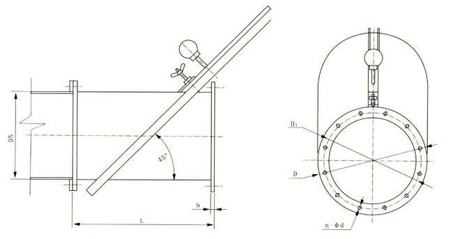 在垂直管道(气流向上)上插板以45度逆气安装。其公称直径指管道外径值。